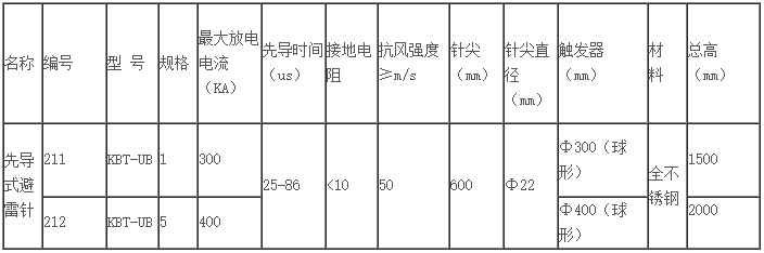 1.KBT-UB先導避雷針是將雷電提前先導并泄入大地,使被保護物免遭直接雷擊的防雷裝置;